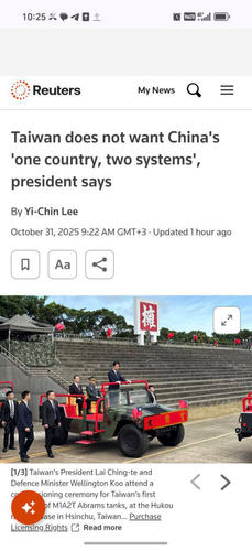 Глава Тайваня Лай Циндэ отверг предложение Пекина «одна страна, две системы», заявив, что остров будет «отстаивать свободу, демократию и защищать свой суверенитет».