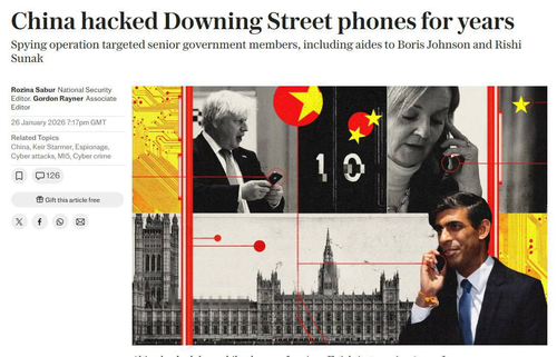 Согласно The Telegraph, Китай проводил многолетнюю хакерскую кампанию, в результате которой были скомпрометированы мобильные телефоны высокопоставленных чиновников в Даунинг-стрит.